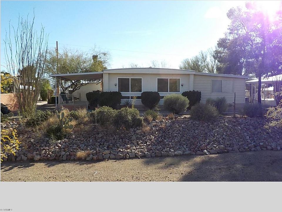 Golf course lot in a 55+ community amenities include an 18 hole golf course plus tennis,shuffleboard and so much more. Home has great mountain and sunset views. Homes faces on 11th teabox. The home has some updates but needs a little work still. Newer appliances 3yrs old,newer windows. Re-roofed when swamp cooler was removed. Furnished. Great Great front covered porch facing the wonderful mountains. Golf cart will be included in the sale. This is definitely a must see. The home was affixed in 2001. 14X20 AZ room has a fireplace and super views of the golf course and mountains.Covered carport will accommodate 2 vehicles. Nice shop.