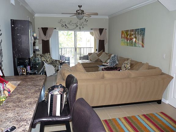 With Large Combination Living -- Dining Room & Open Balcony Overlooking Beautiful Garden & Pool Area. Kitchen Includes Oven/Stove Top, Microwave, Dishwasher, Large Refrigerator, Track Lighting & Snack Bar. All Bedrooms Feature Wood Floors & Walk-in Closets. Both Bathrooms With Shower/Tub Combinations. Separate Laundry Room In Unit, Living/Dining/Kitchen with 24x18 Porcelain Floors, Crown Molding & Much More. Second floor unit with first floor entry plus ATTACHED GARAGE. Community Includes Pool, Spa & Gym. Water/Garbage/Basic Cable Included in HOA