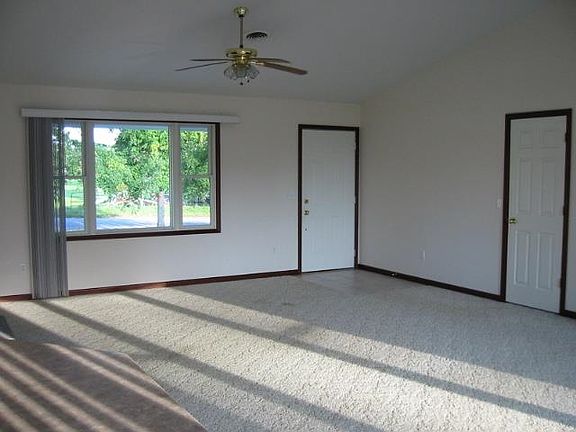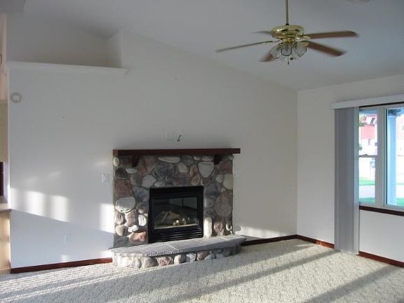 Move right into this 3 BR 2.5 bath open concept ranch style home. Vaulted ceiling in living room, dining area and kitchen. Cheerful kitchen with an abundance of cabinets, all appliances included, open style eating bar. Huge walk-in pantry. Main level laundry with extra sink. Gas fireplace in living room. Bay window in dining area along with sliding glass doors that lead to oversized deck. Master BR suite with walk-in closet and private bath with extra large linen closet. Walk-out basement with sliding doors to patio area. Extra kitchenette area in basement with cabinets and stove. Half bath in lower level. 2 car garage. Energy efficient zoned in-line hot water heat in floor. No exemptions currently filed, taxes will be lower if filed. Estate home, sold as is.