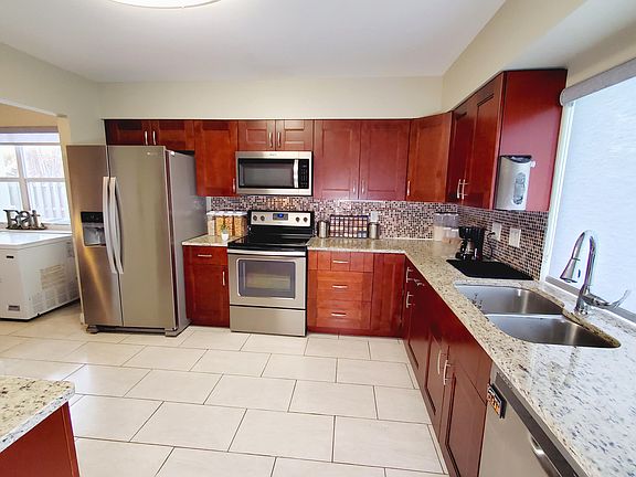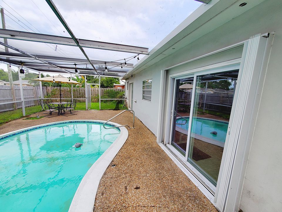 Amazing screened in POOL home with 4 bedrooms 2 baths. Fully fenced yard. All windows have hurricane protection. Huge 1car garage. Large Updated kitchen with granite countertops and stainless steel appliances. Modern tile floor . Bedrooms are stacked 4 Bedrooms are big and bright with custom blackout shades. Bathrooms are modern and big. Everything is updated and ready for you to move in.New electric panel, flat roof 2.5 years old, custom window shades.Huge driveway and big front porch.Hurry and see it today!