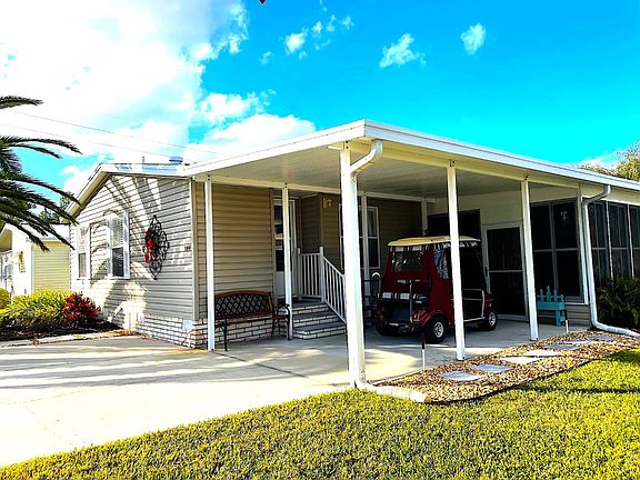 MC1863 -Come see this stunning updated 2/2 home with a Nautical theme. Beautiful blue and white colors accent every room. Brand new vinyl plank flooring throughout and ceramic tiles in lanai . Gorgeous two tone kitchen with new Farmers sink, stainless faucets,water softener and Hood over range. Fabulous glass skylight installed just 2 months ago in guest bath along with a handicapped accessible toilet. New roof inspection of architectural shingles. Brand new HVAC with all new ductwork underneath home including vapor barrier. New tinted windows accent the lovely Lanai and a large storage shed with plenty of shelving. Don't miss this opportunity to own one of the nicest homes in Fairfield Village. A 55+ community with lot rent of $547 in 2021, includes water and sewer. Small pets under 25lbs allowed. This park is just a few minutes away from the new World Equestrian Center, post office, restaurants,grocery and shopping. Lovely clubhouse has nice gym and heated pool along with lockers and billiard room. Get out of the cold and into the Sun. This wonderful home won't last long.
