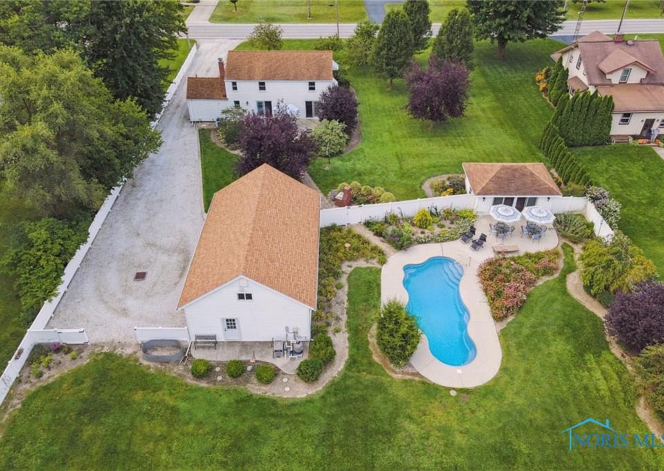 Meander through your acreage in Oregon - Enjoy the manicured back lot which flows into the perennial gardens with delightful native plants! Sit poolside among the butterflies! Perfectly located for the most sun, yet there's a heater for end of season use! Your Very Own Pool House for your entertainment needs! Got toys? Check out the 960 Sq. Foot Detached Garage/Outbuilding w/ 12 ft. entry doors! Retro kitchen has tile floor, lot's of counter space, center room seating & comes fully equipped! Living Room has real hardwood floors! 1st Floor LaundryRoom! Updated Mechanics! Custom Back Deck!