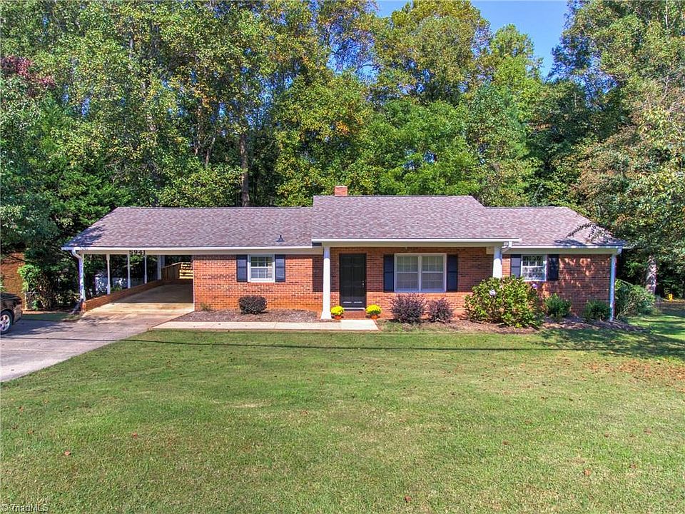 Super cute rancher with 1500+ sq ft on main level nestled in popular Timberwood Trails minutes to downtown Kernersville, Main St, Shopping, Restaurants & I-40. Covered Front Porch greets you. Fresh interior paint & brand new, low maintenance Luxury Vinyl Plank flooring. Formal Living, perfect for entertaining, would also make a wonderful Formal Dining Room. Fireside Den with wood burning fireplace overlooks oversized deck w/built in seating, perfect for BBQ's and get togethers. Eat in kitchen features newly refinished wood cabinetry, ample countertop space, cooktop, new black built in oven & dishwasher. Master Retreat with En Suite bath featuring Walk In Shower. Two additional beds share tiled hall bath. Basement w/new carpet, addtl bed option, oversized Den-not in sq ft due to ceiling height. Laundry area with large storage room. One car carport on main level & One car basement garage, perfect for workshop & addtl storage. Recent Roof, water heater & HVAC<7 yrs.