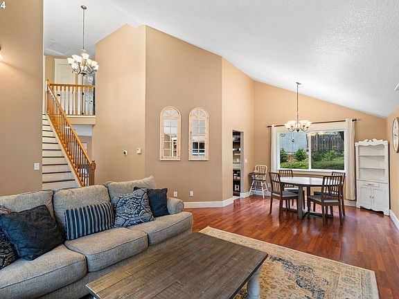 Step into this beautifully kept two-level home in a quiet cul-de-sac. The main level features a bright, open living and dining area with vaulted ceilings. The kitchen includes wood cabinets, and newer appliances— Gas stove, dishwasher, and microwave. A flexible laundry and office space combo on the main offers convenience, ideal as a home office, mudroom, or extra storage. Spacious Primary bedroom provides a walk-in shower, skylight, walk-in closet, and upstairs you will see newer luxury vinyl plank floors throughout. Outside, the expansive, landscaped yard is perfect for entertaining, with a large deck, mature trees, raised garden beds, and recently added RV parking with hookups. Additional features include new furnace, water heater, water softener, and newer AC. Come visit this gem!