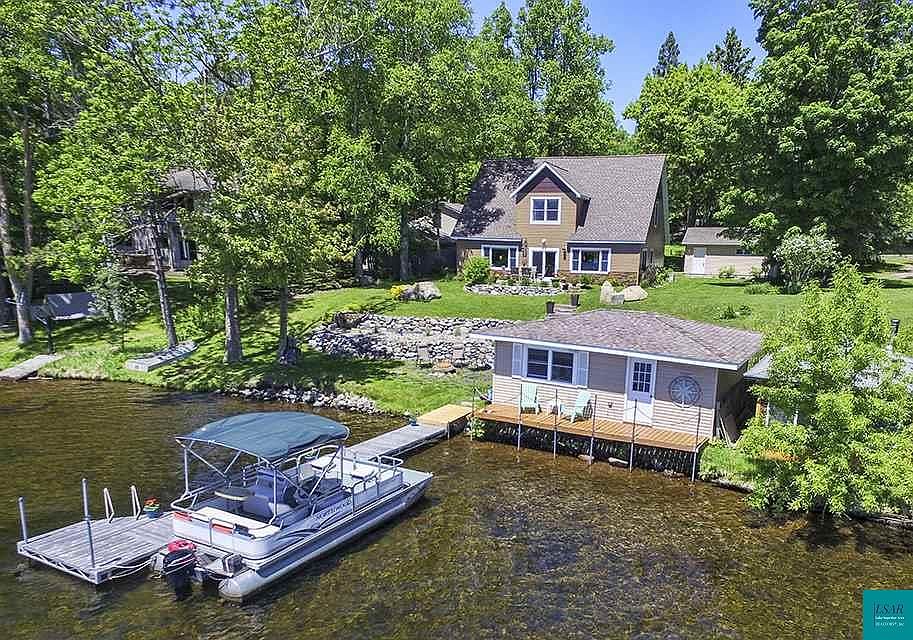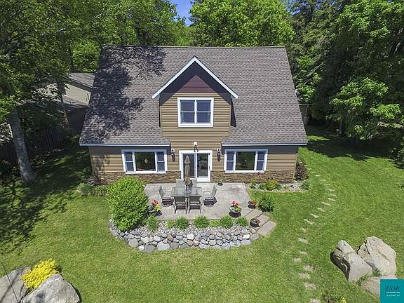 This is a "I Love Living at the Lake" lifestyle.. This incredible Pike Lake 3 Bdrm, 3 Ba, steel sided home was redone in 2010 from the ground up. This quality built home offers a well thought out open floor plan with Australian Cypress, wood, and tile floors, main floor in floor heat, high quality Anderson windows and patio doors overlooking prestigious Pike Lake. The main floor boasts a foyer, laundry, kitchen, dining area, living room and master suite. The well appointed kitchen with informal dining area was designed by Heather A Larsen. It has custom birch cabinetry, a farmhouse sink, solid surface counter tops, breakfast bar, gas range, under cabinet lighting and stainless appliances. The living room is comfortable & cozy and has a gas fireplace with tile from Italy! The Master Suite with luxury bath & walk In closet is sure to please. Upstairs there is a 12x24.8 Sitting area, 2 large Bedrooms with double closets and a full tiled Bath with deep jetted tub. A Boathouse with Sauna and Deck at the landscaped shoreline by the dock is perfect for changing into your swimwear, or to store lake toys. Enjoy one of Duluth's premiere lakes with the shortest distance to shopping and everything Pike Lake has to offer. A once in a lifetime opportunity awaits you at 5942 N Pike Lake Road! Lake Living at it's Finest! (Note: Older garage is used primarily for storage-other 2 car garage built in 2003 is insulated and has wood heat source!)