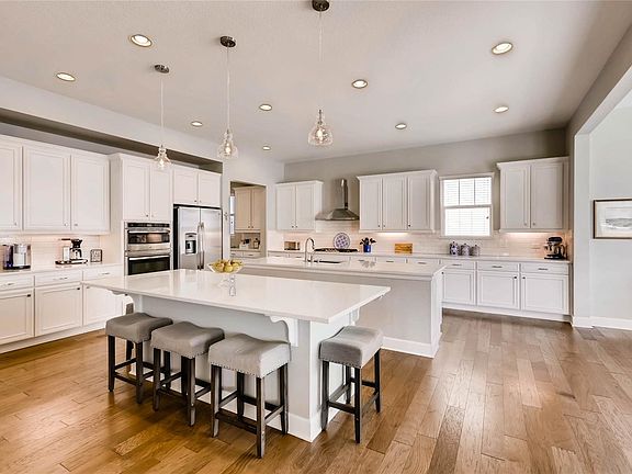The One with the Amazing Kitchen. Seriously. Whether you have many mouths to feed or simply love to entertain, this home is a must-see! Upgraded wood flooring ushers you into the spacious kitchen that features dual islands, abundant cabinet and counter space, stainless steel appliances, plenty of natural light, and an open feel that practically begs friends and family to relax and stay a while. The adjacent breakfast nook is surrounded by windows, and sliding doors open onto a newly designed backyard living space that includes a beautiful covered patio. Other notable features include location on a cul-de-sac, a sun-drenched bonus room, guest bedroom on the main floor with adjacent bath, upstairs laundry room, master closet with a mountain view (yes, really!) and a location that's walking distance to Aurora Reservoir and the neighborhood pool and parks. Oh yeah--and it feeds into top-rated Cherry Creek schools and is only a four-minute drive from the fun and conveniences of Southlands.