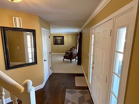 Fall in love with this traditional 4BR/2.5BA 2 story home that offers wooded privacy behind. Charming covered front porch leads into hardwood entry foyer. Crown molding in both the living and dining rooms. BEAUTIFUL remodeled kitchen in 2006 with custom Thomasville cabinetry, quartz countertops, tile backsplash and stainless steel appliances. Kitchen open to the family room with a vaulted ceiling and gas log fireplace. Dinette has access to the deck which makes entertaining & grilling easy. All 4 bedrooms and 2 full bathrooms upstairs. Primary suite features a walk-in closet, a double closet and a private adjoining bathroom. Primary suite bathroom & half bathroom upgraded with granite tops & undermount sinks. Main full bathroom includes dual sinks. Den/loft overlooks the family room. Bedroom #4 and the loft have cathedral ceilings. Finished walkout lower level features a large L-shaped rec room. Great storage in the utility room. 3 stall attached garage with cabinetry for extra storage. Updates include shingles, HE Lennox furnace and Lennox central air in 2010. New gutters, downspouts and LeafGuards in 2016. Fully applianced including newer washer, dryer and water softener. Carpets professionally cleaned Feb 2024. Quick access to shopping at The Shoppes at Grand Prairie. Available for immediate possession!