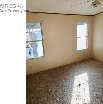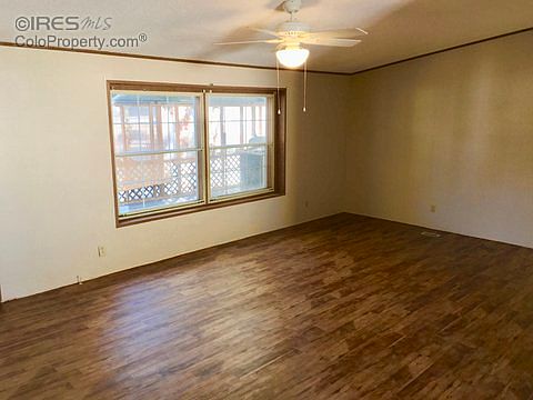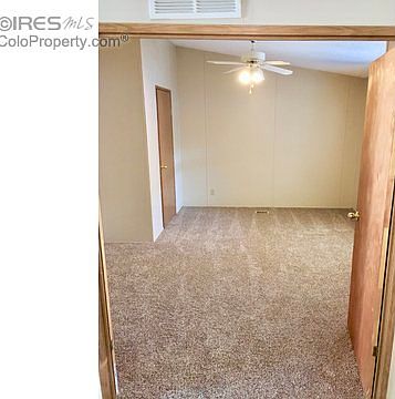 This home is located in the nicest family park in Loveland, and the lot rent is $510 per month. 2016 Remodel. 32 ounce Nylon carpet, new underlayment throughout, Wood flooring. New refrigerator, dish washer, gas range. Fresh paint. Fenced back yard has a sprinkler system. Outside water is free. The home is located on a cul-de-sac with room for a garage to be built. Home backs to a large open field, and has mountain views.Seller is only considering all cash offers at this time.