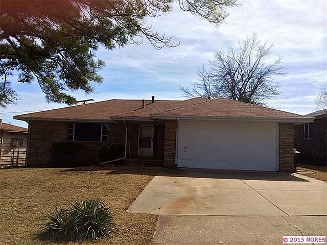 Open floor plan, updated with new paint throughout. New a/c 2014. Hardwood floors refinished in bedrooms. New carpet in den. Lots of windows & light. Large oversized yard with views of Tulsa. Garage floor sealed. Master has 2 closets. Covered patio