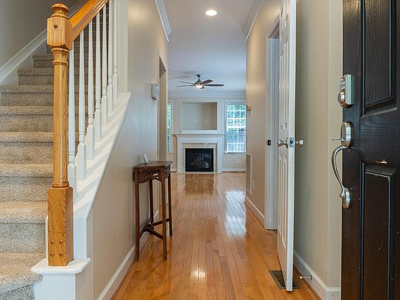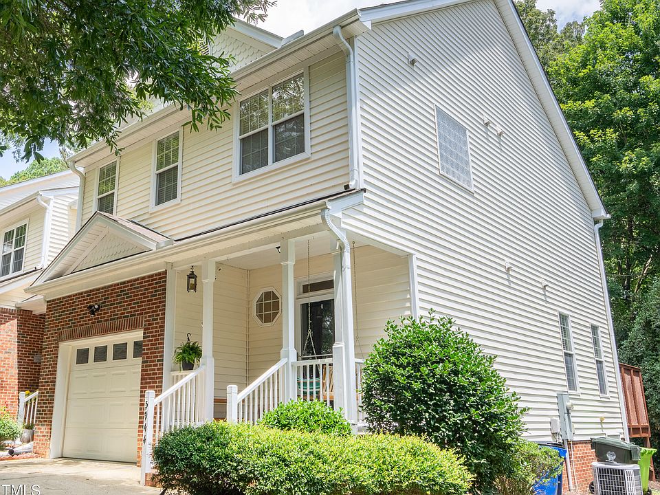 PRICE CHANGE! This beautifully maintained END UNIT townhome offers spacious living with 3 bedrooms and 2 1/2 bathrooms across 1545 square feet of thoughtfully designed space. Step inside to discover an open-concept layout filled with natural light, a well-appointed kitchen, dining area and a cozy living area with fireplace make it ideal for gatherings or relaxing evenings at home. Upstairs, the large primary suite boasts vaulted ceilings, a generous walk-in closet, and a private ensuite with dual vanities, a separate shower, and a luxurious Jacuzzi tub. Two additional bedrooms and second full bath along with a convenient laundry room round out the generous living space. Enjoy the outdoors with a private tree lined backyard and patio—perfect for entertaining or quiet mornings with coffee. With freshly painted rooms and new carpet this unit is in move in condition! Located in a desirable Raleigh community, this home offers easy access to I-540, shopping, dining, and parks. Zoned for excellent schools and situated on a quiet tree lined street. Enjoy the community's neighborhood pool, nearby scenic trails and green spaces, all just a short stroll from cafés, restaurants, and shopping. This is more than a home—it's a lifestyle. Welcome home! Washer, Dryer and Refrigerator all convey.
