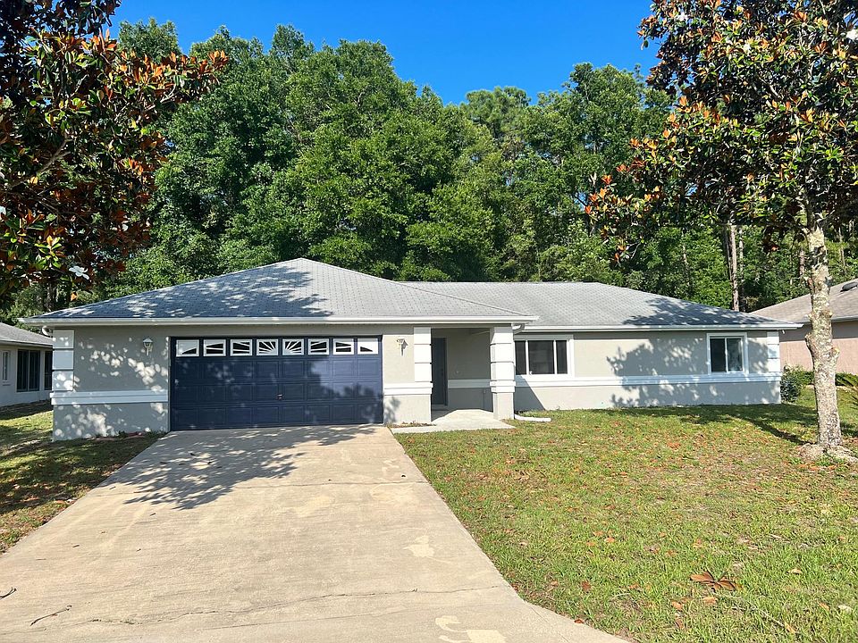 This home is located in a 55 plus community in Cherrywood Estates. The home was just freshly painted on the interior and exterior. Upon entering you will notice the gorgeous wood laminate flooring, which is located everywhere except the master bedroom which is having new carpeting installed. The kitchen features an abundance of cabinetry and a new dishwasher. The glass enclosed lanai leads to a spacious fenced in yard that backs up to a conservation area. The oversized garage has plenty of room for two cars, a work shop, and plenty of storage. There is a new washer/dryer as well as an industrial freezer. The rent includes the Cherrywood Estates amenity fee which includes basic cable and internet. All lawn service including edging, blowing, fertilization, and the trimming of hedges is included. The location is close to a ton of shopping and restaurants. Pet friendly. Multi year lease preferred. Tenant pays for electric and water. Owner pays for lawn, trimming, edging, blowing, and fertilization. Owner pays Cherrywood Estates amenity, trash, cable and internet bill. No smoking. The home is pet friendly. Multi year lease preferred.
