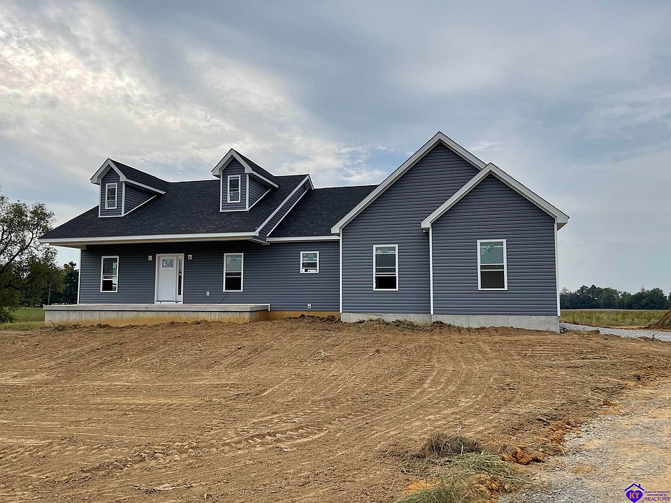 New construction ranch home with large great room, 3 bedrooms, 2 full baths, 2-car garage, full unfinished walk-out basement with Safe Room and rough plumbed for another bath. This home sits on 1.48 acres in a beautiful country setting with covered front and back porches. Manufactured hardwood and tile flooring throughout the main level. Kitchen has a pantry, breakfast room, island, granite countertops and is open to the great room. Primary bedroom has manufactured hardwood, trey ceiling, large bath with double sink vanity with granite, tiled shower and floors, soaker tub and walk-in closet. Large laundry room is adjacent to Primary bedroom. The other 2 bedrooms are located on other side of home.