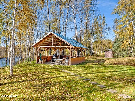 Amazing opportunity to own one of the most unique river front properties in Alaska. Private river frontage on the Little Su with a gorgeous new post and beam BBQ pavilion ready to host some epic gatherings. The large acreage includes several fire pit areas, private trails, and your very own sandy beaches. Sit by a fire and listen to the river flow, relax in your hot tub right on the bank whileyou watch the King Salmon spawn, or grab your boat and head up river right from your backyard. There are endless possibilities here with a perfect set up for entertaining, multi-generational living, weddings, animals, preparedness living, homesteading, etc. Your imagination is the limit! The home is perfectly sized with 3 bedrooms, a sunroom, fully set up bar, and a lodge-style great room with plenty of space for your Alaskan trophies. Two detached shops allow space for everyone and everything. The first shop is 26x38 (988 ft) with a 2 bed/ 1 bath 26x30 (780 ft) ADU above that is currently used as a popular Air B&B with it's very own deck and hot tub overlooking the river. The second shop is a prepper's dream! With 2400 ft (40x60), this space is fantastic. Currently set up downstairs with a bedroom, 1/2 bath plus a shower and laundry, and huge shop space. Mezzanine space around 3 sides. One side is currently used as a home gym, and the other is separated into sections that make organization a breeze. The back side is food storage prep area complete with a sink, plus a bedroom (no window) with a full bath, fireplace, and painted in 50 shades of gray. This home is a must-see, perfect Alaskan oasis. Not a driveby. You cannot see home from street. Please contact your favorite realtor for a private tour.