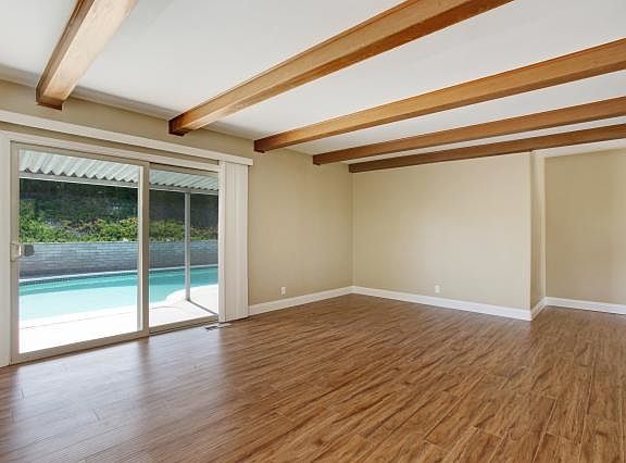 Spacious corner lot in quiet neighborhood close to Lake Murray Park, Mission Trails Golf Course, and Mission Trails Regional Park. Freshly remodeled with new kitchen, new laminate floors, new master bathroom and 2nd bathroom. The new kitchen with new appliances opens up to the west with a bay view window looking to the front yard. The kitchen flows into the attached dining room and living room combination, leading to the sliding doors which open up to the pool and large backyard on this 8,800 sq ft lot.