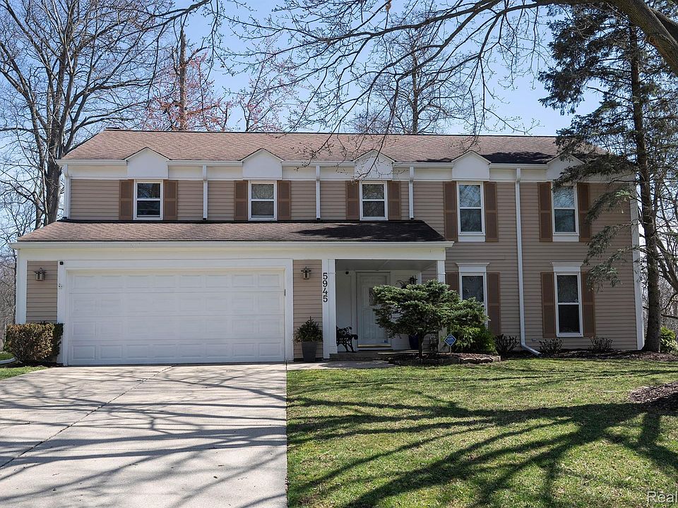 Fantastic Corner Lot! All you need to do is pack your things and move in. 5945 Cromwell Rd will not disappoint with its long list of updates and upgrades. This beautiful, clean, well maintained, 4 bedroom colonial has been freshly painted in neutral colors, a new in-ground sprinkler system with Wi-Fi (control with phone) was recently installed, basement partially finished, and you are going to love cooking and entertaining in the gorgeous kitchen. With Jenn Air double ovens, stainless steel appliances, granite countertops and tons of storage, you will want to host all of your family special events. If you'd rather be outside grilling, you will be very happy with the Trex-like composite deck. Surrounded outback by several mature evergreens purposely planted to act as a privacy fence, your backyard becomes another room of your house. The primary bath was updated with a beautiful ceramic tile floor, quartz countertop and Euro style shower. The family room fireplace is gas and uses a remote control, no bending down to light it. The house is equipped with an alarm system and a 4 filter water filtration system. Water has never tasted so good. Saving the best for last, the laundry room is located on the second floor. No more trips up and down the stairs with heavy baskets. Fox Run Green is a fabulous community inside beautiful West Bloomfield Township with walking trails and playgrounds. Have your agent schedule a showing ASAP!