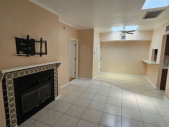 Great central location. Double sided wood burning F/P in living room and master bedroom. Skylights in living and dining rooms. Split bedroom floor plan with walk in closets in both bedrooms. Bedrooms feature wood flooring and ceramic flooring in living areas (no carpeting). Kitchen features all appliances (electric stove) plus m/w. Breakfast bar in dining area. Laundry closet with w/d included. One covered/assigned parking space. Front patio facing south. Community pool and spa. Fort Lowell Realty & Property Management EQUAL HOUSING OPPORTUNITY
