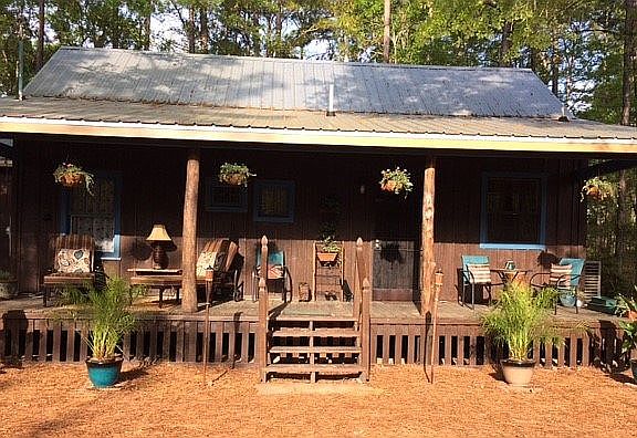 Options Galore! Turn Key, Income Potential Secluded Furnished Vacation Retreat or an owner occupied remodeled cottage style home with an additional tiny cabin, separate shower house, camp kitchen, large sand fire pit and 4-5 campsites all within 11.4 miles to Gulf Shores Beaches! 2020 New Indoor Air Handler, 2018 upgrades include New Septic System, AFS foundation work, granite counter tops, master bath, bamboo flooring, tile and many other improvements. New Metal Roof in 2017. Two parcels (1.0 and .24 acres) of selectively cleared wooded land that must be seen to appreciate all that has been created here. It is unique as it has so many options for how you can utilize the home, it's other structures and the land. The cozy and comfortable Glamping Cabin consists of a 1 room structure w/ small loft, electricity, A/C, heat, Wi-Fi (no plumbing). The cabin has exclusive use of a nearby shower house, with 2 hot showers, two sinks, 1 bucket compost toilet, 1 flush toilet and full camp kitchen. This Bon Secour Retreat can be a private permanent residence or a seasonal 2nd home with ample room for visiting relatives. It can also be a vacation rental, offered for short-term or long-term rentals or for camping and glamping. You can also live in the home while, at the same time, offering the cabin and camp areas to renters. It is all there for your choosing! This convenient location gives you the feel of rustic, private, country living while only being minutes from shopping, OWA Entertainment Center, restaurants like The Tin Top Restaurant & Oyster Bar, white sandy beaches and so much more.