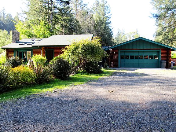 This is a beautiful log cabin located approx. 10 miles from Coquille. This is a amazing home with 3 bedrooms and 2 baths, sunroom off master, kitchen open to dining room, nice sized laundry with pantry storage, good sized living room with skylights, oversized garage with work benches and room for storage, huge deck with hot tub, amazing private yard, bunk house for guests, and the river just across the street! Call for a showing today!