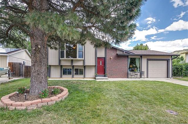 Beautifully maintained Apple Meadows Tri Level home. Enjoy the Southwest facing spacious backyard and covered flagstone patio space with outdoor natural gas fire pit. This yard feels like a park & overlooks the Stunning views of North Table Mountain. The kitchen is cozy, tons of large windows throughout the home to bring in light, warmth, an open space feel. 3 bedrooms, 2 bathrooms with a bright garden level basement.This home has been loved & in wonderful condition. Close to parks and trail systems. Great biking and hiking out your front door and easy access to downtown Golden, Arvada, Denver, Boulder and the Mountains. 5.5 miles to new light rail line coming through Arvada.