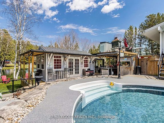 Step into your own private gated resort like home the epitome of luxury living with this exceptional 4,000 sq ft home, nestled on nearly 10 acres of breathtaking, private land. Designed as your own personal resort, this stunning estate offers a perfect blend of elegance, comfort, and relaxation.Enjoy endless summer days by the outdoor pool, ideal for family gatherings and sun-filled afternoons. Entertain in style with a dedicated outdoor bar and BBQ area, perfect for hosting friends and loved ones. Ample parking spaces ensure plenty of room for guests and extra vehicles.Inside, the home boasts exquisite architecture and modern amenities, with spacious living areas that cater to every need. All bedrooms are thoughtfully located on the lower level and feature walkouts to a serene pond, offering unparalleled access to the peaceful natural surroundings. This unique layout enhances the connection between indoor and outdoor living while maintaining privacy and comfort.Beyond the main home, this property includes a heated workshop, perfect for hobbies, projects, or extra storage. The primary suite is a true sanctuary, complete with a luxurious 6-piece ensuite and an expansive walk-in closet. Every window throughout the home offers picturesque views of the lush landscape, creating a tranquil atmosphere at every turn.This property isn't just a home it's a lifestyle, offering the ultimate in privacy, sophistication, and outdoor living. Don't miss the chance to experience this extraordinary estate. Schedule your private viewing today, as opportunities like this are rare and wont last long! **EXTRAS** Gated Driveway Leads To The Large Heated Shop Situated At The Back Of The Property, And A BonusHome. Also Features A Slate Roof, Beautiful Wood Fence, Geothermal Heating, a Hot Tub And So Much More!