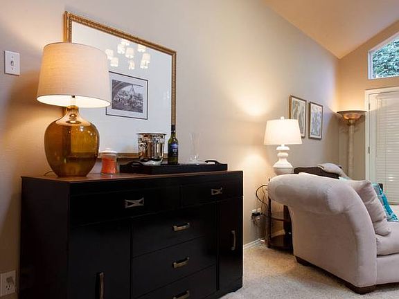 Meticulously maintained, 13 ft ceilings in great room w/ fireplace, refinished hardwood entry, new kitchen and bathrooms. Great location - walking distance to beautiful riverside Willamette Park, and restaurants in Johns Landing and South Waterfront, close to downtown PDX. No HOAs. Newish exterior and interior paint, newer roof, has AC, carpet in bedrooms, private fenced backyard patio, large single garage with built-ins for extra storage space.