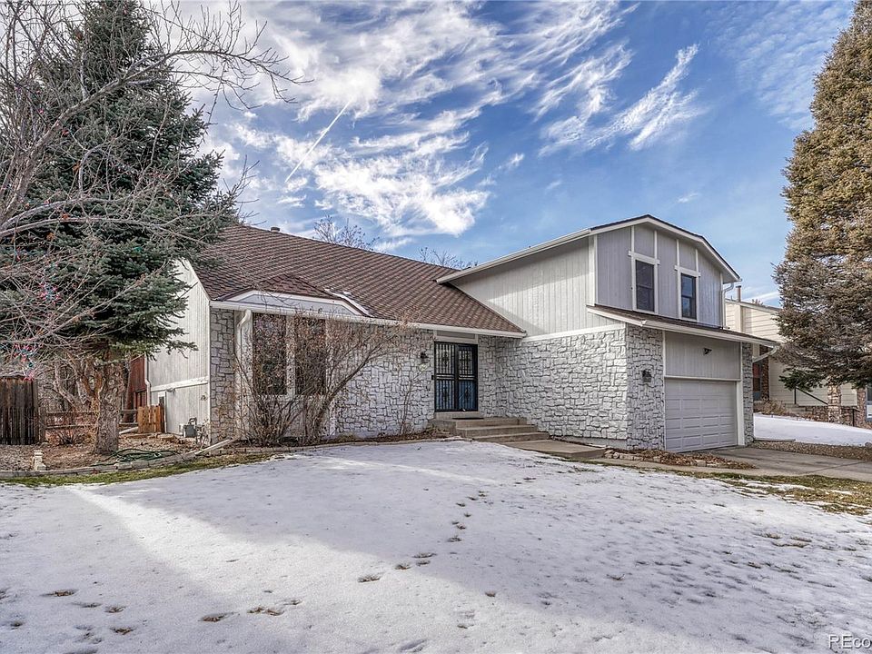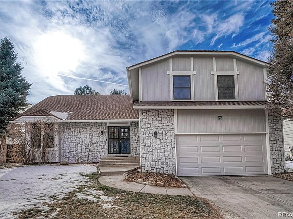 Discover this elegant 4 bed 2.5 bath home, boasting 2,246 sqft of above-grade living space, complemented by an additional 392 sqft unfinished basement, on a sprawling 9,496 sqft lot in Cherry Creek Vista South. The property features a private backyard with mature landscaping, including a deck accessible from the kitchen perfect for outdoor entertaining & enjoying the tranquil waterfall & stream. Inside, a bright living room is open to a gourmet kitchen updated in 2018 with LG appliances, double oven, professional hood & quartz countertops. The upper level comfortably accommodates 4 bedrooms, 2 bathrooms highlighted by a large primary suite and private bath and jetted tub in second bath. The lower level features a spacious family room & gas fireplace ideal for relaxing Colorado evenings with direct access to the back patio. You will love the modern floating shelves entertainment center surrounding a new UHD TV included with the home. This level also includes a private half-bath, bonus storage room & laundry area with included washer & dryer. Recent enhancements include a 16 SEER AC unit & furnace (2018), a high-efficiency whole house fan (2022) & Andersen sliding doors & windows (2020). The home features architectural shingles with a fresh coat of exterior paint in October 2023. An oversized garage features a new door & 240V/50A universal electric car charging. The home is further complemented by engineered wood flooring, an upgraded electrical panel (2018), the removal of popcorn ceilings, and fresh paint.