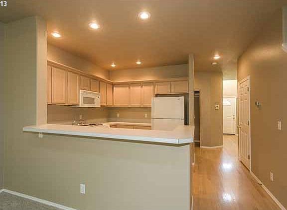 Well located townhome (4 total). No HOA's brand new exterior and interior paint, newer roof, has AC, hardwood entry and kit, wall to wall carpet, private fenced backyard patio, close to all area restaurants and Willamette Park, close to downtown. Large single garage for extra storage space. No sign in yard until 9/26/13.