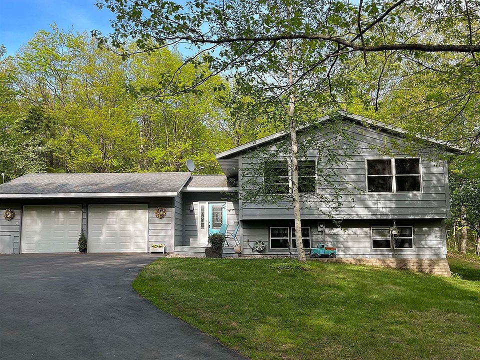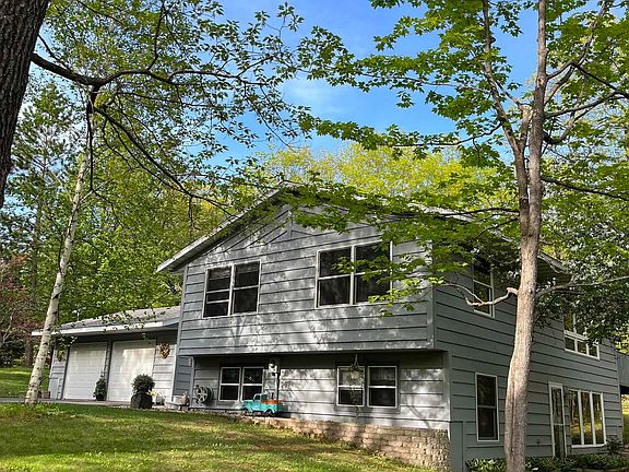 If you're looking for privacy close to town, this will be the home you've been looking for. A 3 bedroom, 2 full bath split foyer with an attached 2 car garage. New kitchen in 2010 with hickory cabinets, quartz countertops, and new stainless appliances in 2020, large open living room, 2 spacious bedrooms on main level. Large wood fireplaced family room in the lower level walkout basement with finished utility room, plus bedroom and a full bath. Outside features 2 storage bldgs, a pond, a new gravel driveway in 2019, new mound septic in 2020, a new drilled well pump in 2020, new roof in 2006. All of this is on 10 beautiful wooded acres with some trails.