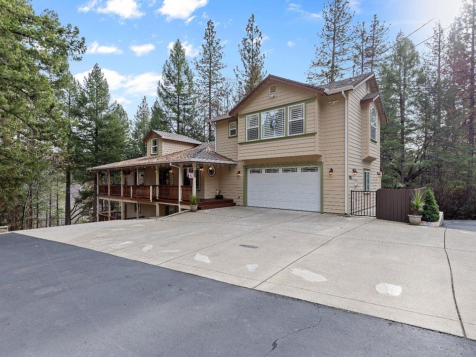 Are you looking for a mountain lifestyle with modern amenities? Vacation home or AirBNB? This home has it all! Newer build with newer interior/exterior paint, NEW HVAC and zoning, ensuring your comfort for all seasons. New Pellet stove, beautiful propane fireplace for those cold nights. Never worry about unexpected power outages with a whole house 17Kw auto generator, to run all the necessities during a power outage. A NEW Tuff Shed for your toys and Epoxy floors with new cabinets in the 2 car garage. The long paved driveway offers plenty of parking for family gatherings, an RV/trailer, boat, etc! Enjoy the ease of public water and HIGH SPEED Comcast Xfinity internet. Relax on the covered deck from the main floor or the second deck from the primary Suite, while enjoying your morning coffee or evening glass of wine from multiple Apple Hill Wineries near by. A short 5 minute drive to Sly Park Recreation Area and 10 minutes to the grocery store and other amenities and restaurants. Worried about snow? Sly Park Rd. is county maintained and is a breeze to drive in the winter. Enjoy the huge loft area with a full bath and walk in closet with beautiful plantain shutters. Beautiful living/dining/kitchen open concept. 3 bedrooms on the bottom floor, including the primary suite. Must see!