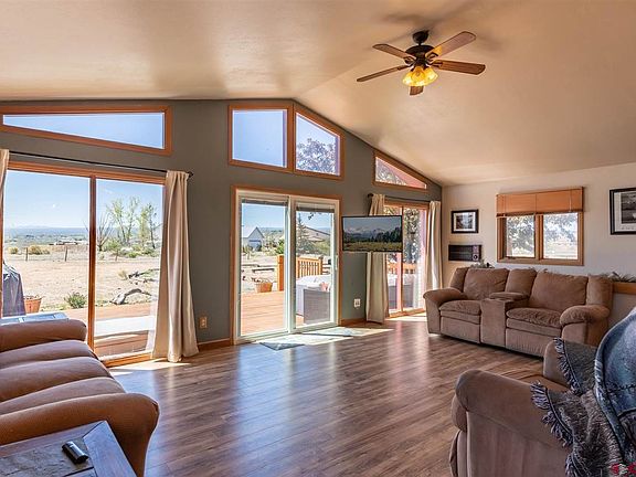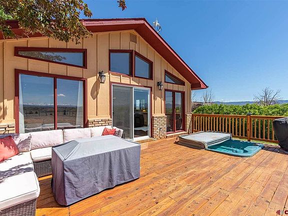 Massive 360 degree views from this 1.25 acre parcel with no HOA! Wall of living room windows displays the unobstructed expansive San Juan Mountains and surrounding views. Cute updated kitchen with granite countertops, decorative backsplash and GE stainless appliances. Dining area with new light fixture is open to both kitchen and living areas. Durable laminate flooring spans the entire area and leads you down the hallway to two guest bedrooms, the main bath and master bedroom. Tile flooring and a tile shower in the main bathroom. Cute barn door and wood accent wall in one of the guest bedrooms. Master bath with tiled step-in shower. Huge basement family room with bar area with granite countertop. Tons of easily accessed crawl space storage. Woodstove in the living room keeps the home warm, with supplemental electric heat, if needed. Large laundry/mud room with lots of storage cabinets, washer and dryer included. Outside there's a spacious southern deck where you'll enjoy soaking in the hot tub under the stars with the city lights in the distance. Mature landscaping/trees with sprinkler and drip system in yard. New stairs and deck to door.  One car detached garage with plenty of room for additional building, R/V, or other toys. Quick - make this home your next home!