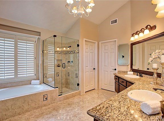 - RoomBathroomFeatures: Shower in Tub, Bathtub, Shower, Double Sinks In Master Bath, Separate tub and shower, Granite Counters, Vanity area, Closet in bathroom, Privacy toilet door