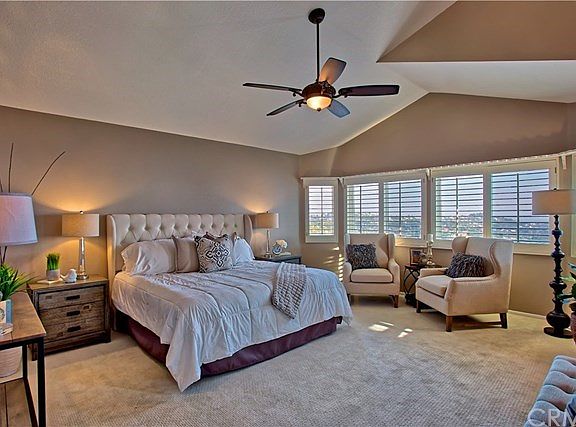 Views of city lights, inspiring sunsets and Catalina Island set the backdrop for this incredible home enjoying a prime location within the 24/7 guard gated community of Rocking Horse Ridge. Beyond the private gate and courtyard, the foyer greets you with a voluminous ceiling and marble floors. Showcasing a brick fireplace, the formal living room flows seamlessly into the formal dining room. In the mood to take the party outside? Just step through sliding doors to the expansive brick patio and dance the night away under the starry sky. This meticulous home showcases upgraded bathrooms and a premium kitchen with custom cabinetry, granite countertops, bar/counter, pendant lighting, island, and breakfast area with bay window overlooking the patio. The kitchen-adjacent family room features lustrous wood flooring, a wet bar ideal for entertaining, plantation shutters, media niche and shelving to display your favorite treasures. A powder room and laundry with sink and storage complete the first level. Get cozy in the master bedroom, offering a walk-in closet with cedar built-ins and access to attic storage. Relax in the spa-worthy ensuite with soaking tub, shower, granite counters and dual vanities. Two secondary bedrooms share an upgraded bath. Community amenities include a clubhouse, pool, sauna, park, playground and 3 tennis courts. Located in the attendance area of Blue Ribbon award winning schools, this immaculate home leaves nothing to be desired. Call to