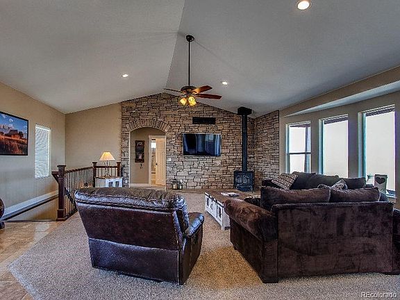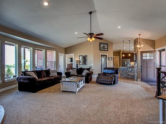Beautiful Custom Home on 2+ Acres. 3 Bed/2 bath with Walkout Basement. Oversized Garage (Finished) with Bonus Room. Open Floor Plan with Vaulted Ceilings. Travertine Flooring Throughout the Kitchen, Pantry, Laundry/Mud Room, Front & Back Entry Ways. Slate Stainless Steel Kitchen Appliances with Gas Convection Range. Upgraded Espresso Knotty Alder Cabinetry with Soft Close Doors & Drawers. Cast Iron Wood Burning Fireplace on Stamped & Stained Concrete with Full Stone Accent Wall. Canned Lighting Throughout. Bathroom Floors, Shower & Tub Surrounds are Custom Tiled. Both Main & Master Bedroom Showers are Enclosed. Walk-In Closets & Pantry. Etched Pantry & Laundry Room Doors. Master Bedroom & Living Room Offer Large Bow Windows - Bay Window in Kitchen. Covered Front & Back Patio with Concrete Sidewalks. Horses & Large Animals Welcome. 2 Minutes to I-70 & Schools. Natural Gas, Private Well & Septic. County Maintained Rds. Basement is framed and ready to go. Tractor included!