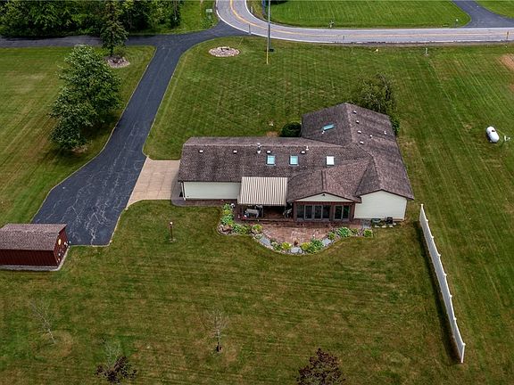 This beautiful, well kept, Custom built 2,310 sq ft Ranch sits on a manicured 10 acre parcel with a 40 x 50 Steel framed Barn/Garage. Perfect for the car enthusiast, RV/boat storage, wood worker, craftsman or small business owner. Two fire places, sun room bar, large bedrooms, covered patio. Huge basement for office or other potential expansion. Work and play on this Residential/Industrial zoned private parcel! Just minutes from Erie County/Amherst border and Transit Road. Starpoint Schools! This property is very adaptable for different uses, with potential for subdivision. Square footage is from appraisal measurement.