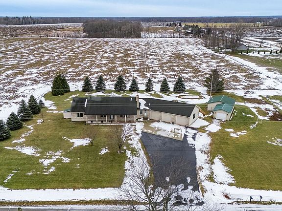 A property that truly offers space, versatility, and convenience. Set on 2.29 acres, this sprawling 3-bedroom, 2.5-bath ranch features more than 2,600 square feet of main-floor living, plus an additional 2,200 square feet in the basement. The layout includes expansive rooms throughout, including a large family room just off the attached garage—ideal for everyday living or gathering space. The bright white kitchen provides abundant workspace and flows into a spacious eat-in dining area. The living room features a fireplace, creating a welcoming focal point. Main-floor laundry is conveniently located near all bedrooms. The primary suite includes a fully remodeled bathroom designed with accessibility in mind, featuring a low-profile shower, an accessible-height commode with grab bars, an accessible vanity, and a nicely finished walk-in closet. Windows throughout the home have been replaced, adding to the home’s efficiency and comfort. The home is also equipped with a Generac whole-house generator, providing peace of mind year-round. Boiler was new in 2017. Central air was also added. The basement adds excellent functionality with a Bilco door providing direct access to the backyard. Outdoor living includes a patio overlooking the private setting. In addition to the 3-car attached garage, the property includes a 24x24 heated and air-conditioned workshop—ideal for hobbies, storage, or additional workspace. Enjoy an “up north” feel without the long drive. Located just minutes from Pinconning, Standish, local gaming, and the blue waters of Lake Huron, with an easy commute and I-75 only 5 miles away.