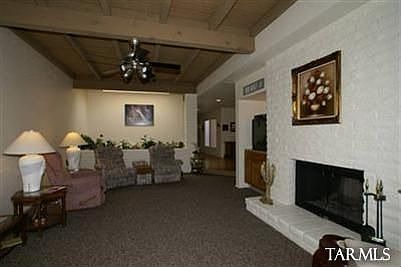 Lovely end unit with privacy & outstanding views of the Catalinas. Split BR plan with 2 master suites. Beamed ceilings in LR with wet bar-fireplace and built in book shelves. New hot water heater with circulating instant water heater pump. Remodeled kitchen with new appliances. Close to shopping, schools and public transportation. Nice open bright floor plan.