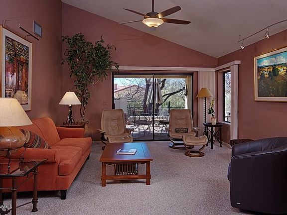 For more information on this property, contact the Listing Agent, Greg Reihman at (520) 918-5966 or gregnbecca@LongRealty.com. Private corner lot at the end of a secluded cul-de-sac with wonderful mountain and desert views. The backyard overlooks a lush common area to the west and backs up to a private common area to the south. The extended flagstone patio is perfect for entertaining. This beautifully remodeled home has tile floors in the hallways, kitchen and guest bath, newer Berber carpet in living room, master and guest bedroom. The master bath has travertine floors and shower, custom cherry cabinets and dressers, remodeled in 2010. New ceiling fans, light fixtures and hardware. This is a very special home.