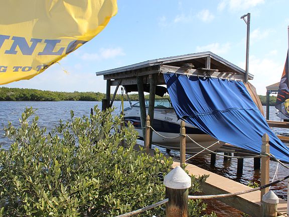 THIS STUNNING RIVERFRONT HOME IS A MUST SEE.. A BOAT LOVERS DREAM WITH A PRIVATE DOCK AND BOAT LIFT. LARGE DRIVEWAY FOR YOUR BOAT TRAILER PLUS TWO CAR GARAGE. GREAT OUTDOOR LIVING SPACE RIGHT HERE TO ENTERTAIN ON THE WATER. THIS 2 BED 2 BA HOME ALSO HAS AN ENCLOSED PATIO WITH JACUZZI WITH MAGNIFICENT VIEWS OF THE WATER. THE LIVING ROOM ALSO BOASTS A WOOD BURNING FIREPLACE. ABOVE GARAGE HAS A SMALL FLEX ROOM FOR OFFICE/ OR GUEST ROOM. GREAT LOCATION CLOSE TO RESTAURANTS, SHOPS AND BEACHES..START LIVING THE LIFESTYLE THAT EVERYONE MOVES HERE FOR!HURRICANE SHUTTERS THROUGHOUT!BEING SOLD FURNISHED! CALL TODAY!
