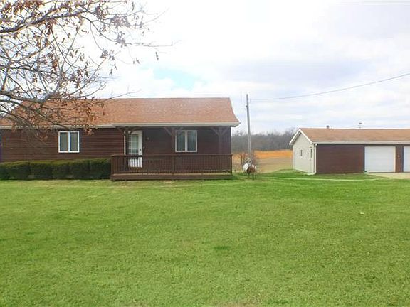 Well-maintained home on peaceful 7 acres with stocked pond. Two spacious bedrooms upstairs and one non-conforming bedroom in basement with huge bathroom with Jacuzzi tub. Large detached garage with two garage doors. Beautiful wood floors in kitchen/dining area. Basement is finished with large family room with built-in for TV and speakers. Home is so close to town but far enough to enjoy country living and quiet.