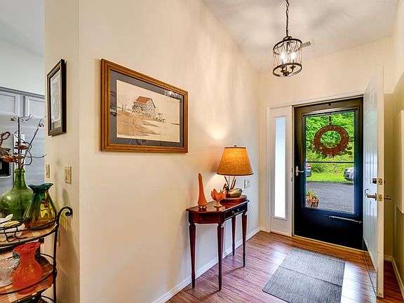 This lovely, spacious, end unit villa is located in the gated community of Mill Creek Country Club. The villa is a one level townhome with 2 bedrooms and 2 bathrooms, with a carport. The Villa is in immaculate condition with updated, stainless steel appliances in the Kitchen, an open floor plan, & a living room that has cathedral ceilings and a wood burning stove. The living room and master bedroom both have sliding glass doors that open to a large covered porch where you can enjoy your morning coffee. Beautiful, established, flower beds both front and back for your enjoyment. The villa is part of a homeowners association that covers most of the exterior maintenance, including the roof and common areas, making it easy to maintain. The villa also has high-speed cable internet, making it perfect for remote work. Don't wait, as these villas rarely become available. Make this your perfect getaway or full-time residence in the Mountains of Western North Carolina!