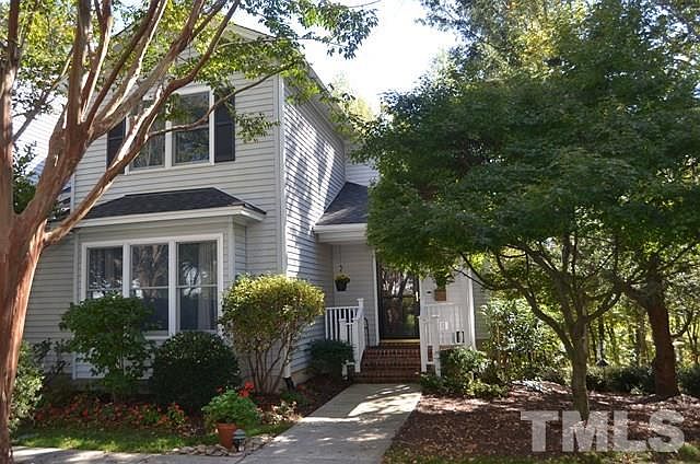 Gorgeous end-unit townhome.Great location,easy access to Swim/Croquet Club & The Gathering Place!Few steps & cvd entry pch welcomes you to FR w/volume ceiling,FP w/gas logs,2 skylites.Sunrm currently ofc--overlooks beautiful hdwd forest & creek to rear.Kit updated w/leathered black pearl granite,tile bksplash,great appliances.Adj bkfst area leads to oversized deck.1st flr MBR w/bay wndw,WIC,own BA.Half BA for guests.No carpet on 1st flr!2nd flr w/1 huge BR(currently media rm)+ 2nd guest BR.Tons of stg.