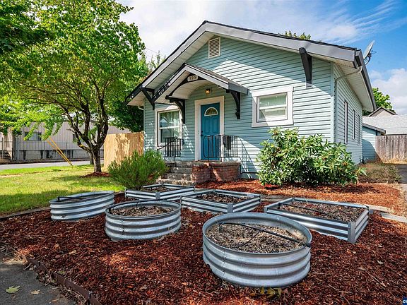 Charming bungalow radiating charm w/picture railing, built-ins and elegant vintage pillars. On a corner lot with a big fenced yard & handy tool shed. Updated kitchen with walk-in pantry, trendy floating shelves, stylish subway tile backsplash. Fresh interior & exterior paint, new carpet, and newer gas furnace. Formal dining room, interior laundry room./mudroom. Just blocks to Aldrich Park and Bush Pasture Park. Close to Willamette University, downtown, I-5 and Salem hospital - ideal starter or investment!