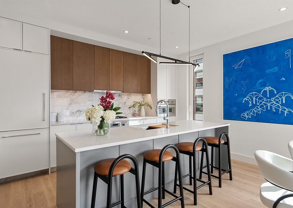 Newly completed & ready for occupancy! The Residences at 595 Albany, a collection of 10 meticulously appointed homes in Boston's South End. This stunning residence offers direct elevator access into approx. 1,048sf of open living space, 2 bedrooms, 2 bathrooms, a private balcony w/ trifold doors & exquisite attention to detail ensuring optimal proportions & flow. Large oversized windows flood this home w/ an abundance of natural light, highlighting the hardwood flooring & premium finishes throughout including a custom three-tone kitchen w/ top-of-the-line, integrated appliances & Calacatta stone countertops. En-suite to the primary bed, a luxurious, spa-inspired bathroom w/ a custom double sink vanity. Residents enjoy an exquisitely designed lobby with secured smart-access technology, package storage, and a common roof deck with a gas fire pit and grill, lounge seating and sweeping sunset views of the Back Bay skyline. Perfectly positioned in the SoWa's Art and Design District.