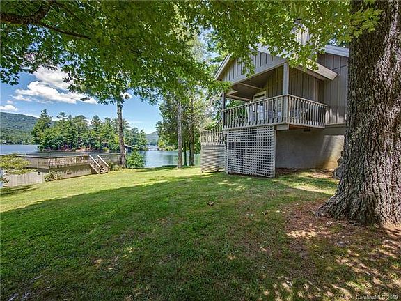 Huge lake and mountain views highlight this 3 bedroom (and bonus room for additional guests) 4 bath Mountain Lake Chalet with a generous 240 feet of Lake Toxaway frontage. Two wood burning native stone fireplaces, vaulted ceilings throughout, and hardwood floors accent a comfortable open floor-plan. A two car garage, two bay boat house with patio top, and outdoor covered picnic shed also enhance the property. The circular drive makes for easy ingress and egress.