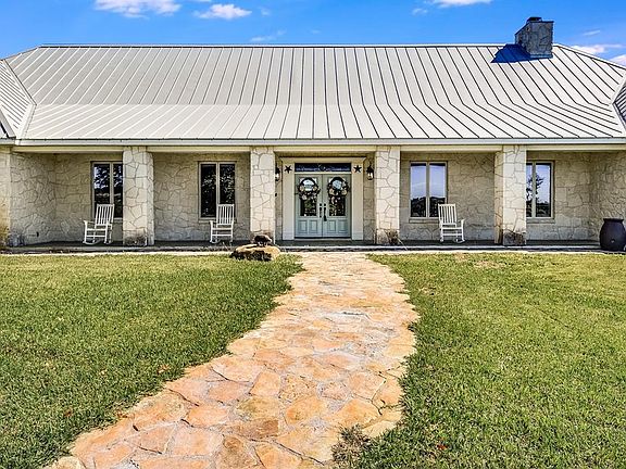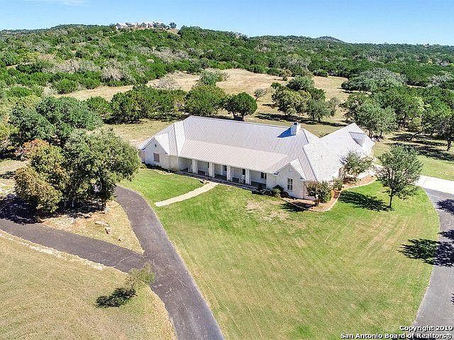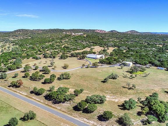 Capture sunsets on this privately gated Wildlife Exempt 40 acre horse/hunting property within gated community of other large acreage properties! Nice gently rolling Hill Country land w/nice westerly views. West part of property scattering of hardwoods with east part heavier cover of Cedars & Oaks. Heavy grass cover. Beautiful stone open concept home split floor plan including 3 bedrooms [Master Suite bath beautiful w/2 large walk-in closets & his/her sinks], 3 bathrooms. Plenty of storage closets throughout home. Plantation shutters throughout. Beautiful living room, rock fireplace, built-in cabinets, surround sound. There is also a detached 560 square foot Guest quarters above garage includes 1 bedroom 1 bath. Two-owner custom built in 2002. Covered front porch 7x55 w/beautiful views of the distant Hill Country. Back covered patio 15x24 & 11x55. 16x16 open concrete patio. Underground utilities to home. 2-car garage 23x34. Attic access from two points in the home/guest quarters. West & east lines fenced, north line not fenced, south line partially fenced. 6-acre fenced trap. Steel barn 50x30 w/two slide-out doors. RV hookup. Fenced garden area 34x45. Large ranch neighbor to east.