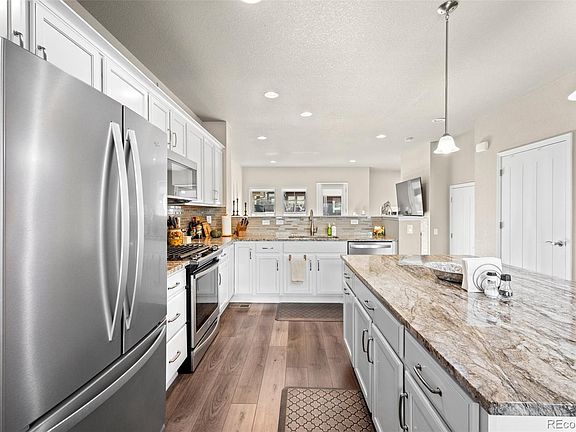 Welcome to this modern and spacious townhome situated in the scenic Boulder County side of Erie. This popular floor plan boasts a covered front patio, perfect for relaxing outdoors. Step inside to find a sleek modern kitchen equipped with a center island and gas range, ideal for culinary enthusiasts. The living room features a gas fireplace, adding warmth and ambiance to the space. Enjoy the convenience of low maintenance living in the sought-after Boulder Creek neighborhood. Plus, the property's proximity to Thomas Reservoir offers delightful recreational opportunities right at your doorstep. This home is a perfect blend of style, comfort, and location. Take advantage of our preferred lender partner's incentive program offering a no cost 1/1 temporary buydown, or a credit equal to 1% of the new loan amount towards a permanent buydown!