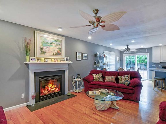 This pristine home with water views, located in Breton Woods of Brick, is what you've been waiting for! This beautiful 3 bed, 2 bath has it all, updated kitchen with stainless steel appliances, center island, hardwood floors, gas fireplace, recessed lights, over sized lot with large detached garage. Master bedroom boasts a walk in closet and full bath. Enjoy summer nights watching the fireworks on your patio with built in fire pit. Close to beaches with excellent curb appeal. This home will not disappoint!