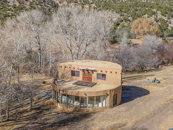 Wow! Ever thought it could be possible to live in paradise? This round, two bedroom, two bath adobe home has panoramic views to enjoy paradise, both day and night, and throughout all four seasons. Some of the amenities are the thick adobe walls, the huge vigas, the open and wide solarium, and a steam shower to start or end the day. The home and land presents all the beauty and splendor Mother Earth provides in our Northern NM mountain properties, rich soil, an abundance of water, tall trees, mountains, valleys, and streams. It also borders forest lands. A small guest house with one bath and kitchen also sits on this property. A beautiful place to share with friends or an incredible place for a studio/home office for the creative mind. There is a stream, Canoncito Seco runs through the property (year round) and into Canones Creek. The Canones creek runs alongside the western property boundary. The entire setting must be experienced to believe it. Warning, a pinch may be needed to assure oneself this is reality. Make sure to view the video link.