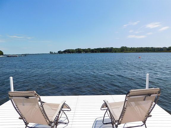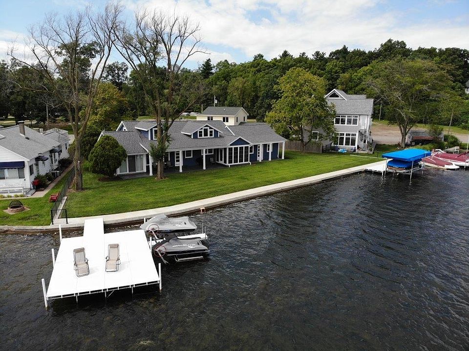 WAWASEE LAKEFRONT and Channelfront 156 feet of waterfront, this is the best of both worlds! Imagine sittin on the dock of the bay, sittin in the morning sun...sittin when the evening comes. The views from this spot are awesome. Wetlands across from you offer the natural beauty of the lake, yet you are close to all the action; restaurants by boat, shopping for provisions in town. Long views of the lake, windows windows and more windows to take advantage of the magnificent views. This Smart Home (everything can be controlled from your phone, HVAC, media etc) has been completely renovated with nothing but the best. Quartz counters, hardwood floors, R/O water, heated tile flooring, stamped concrete patios. The third bedroom upstairs is mega space for a bunk room. Family room is plumbed for bar if you want. Screened/windowed three season room includes hot tub. Heated garage. Pier.