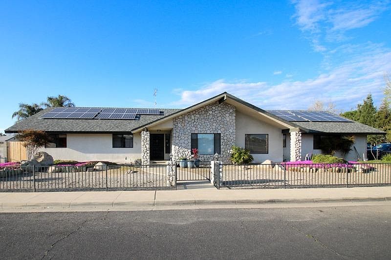 New PRICE! The Best of Both Worlds. Beautiful custom home Northside Dinuba as well as owned solar. Don't miss this opportunity. Right across the street from Lincoln School. This four-bedroom two-and-a-half bathroom has been remodeled and updated to show like a model home. Beautiful bamboo flooring creates an open and flowing floor plan. Complete custom kitchen with high-end appliances, double oven, quartz countertop and tile flooring. Master bedroom and bath suite include oversized tile custom shower and door to backyard. Extras to be excited about are indoor laundry, walk-in pantry and giant mud room for those dirty shoes and school backpacks. Backyard includes a beautiful tongue and groove covered patio under roof line. Second gazebo patio with concrete for those large parties. Double gate for RV parking or extra room for kids to play.